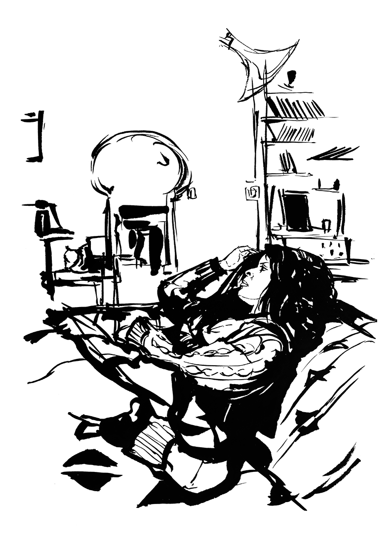 Moment de détente pour Adriana dans le canapé du salon collectif.