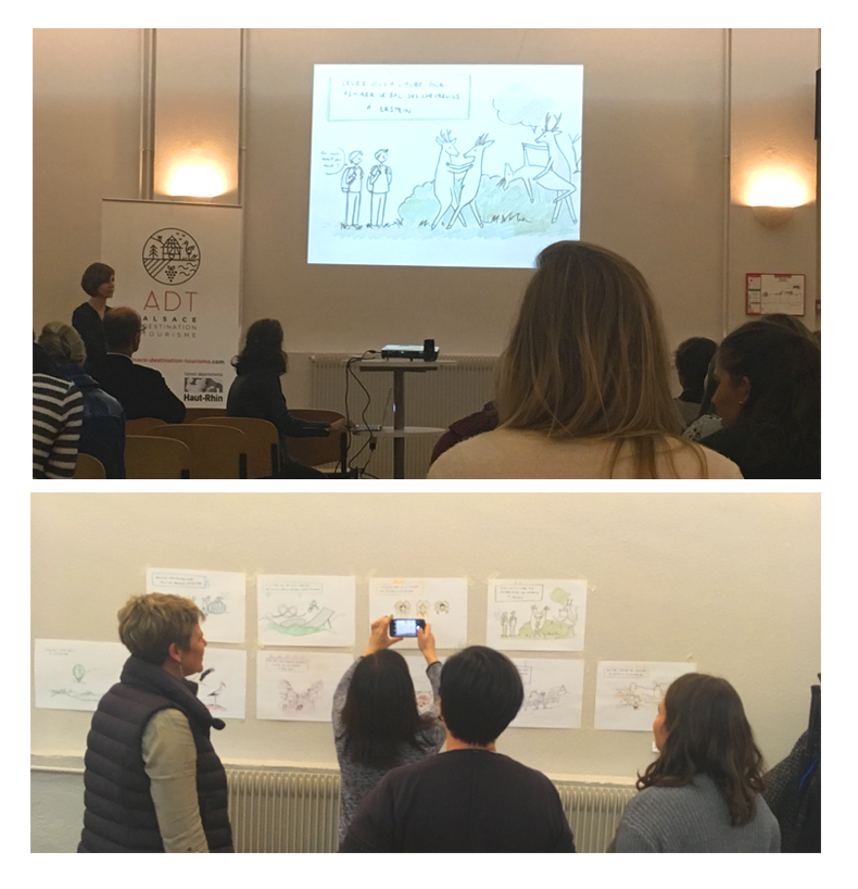 Quelques exemples de livesketching réalisées pendant la réunion d'ADT (Alsace Destination Tourisme) organisée par l'agence Léon Travel. But de la facilitation graphique : illustrer en direct les différentes idées émergentes des ateliers. Quinze planches ont été réalisées dans la journée.