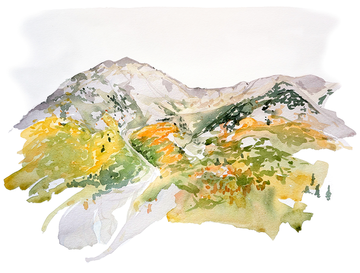 Aux alentours, le manteau automnal recouvre les parois rocheuses des Alpes. Le ciel est changeant, et des faisceaux de lumière parcourent l’explosion de couleurs végétales. Nous évoluons dans un tableau vivant, différent chaque matin.