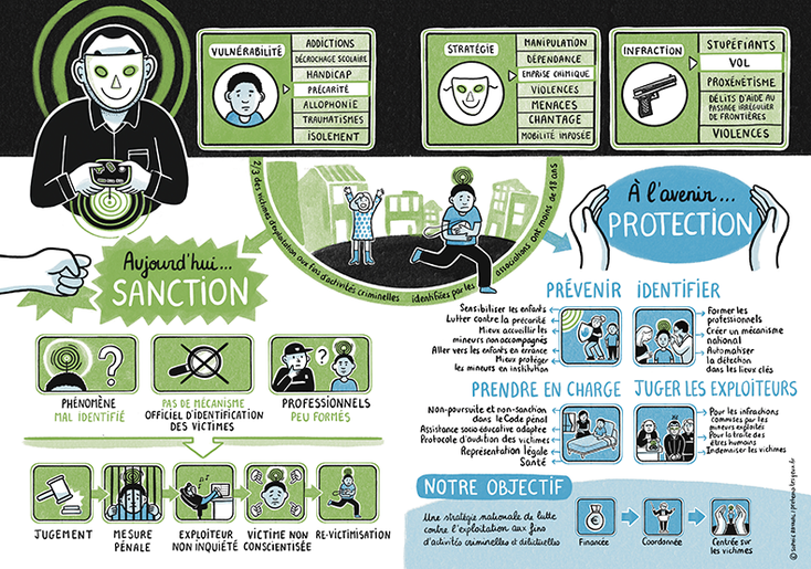 Fresque réalisée pour synthétiser le rapport rédigé sur la pédocriminalité et l'influsence des réseaux de détournement de mineurs.