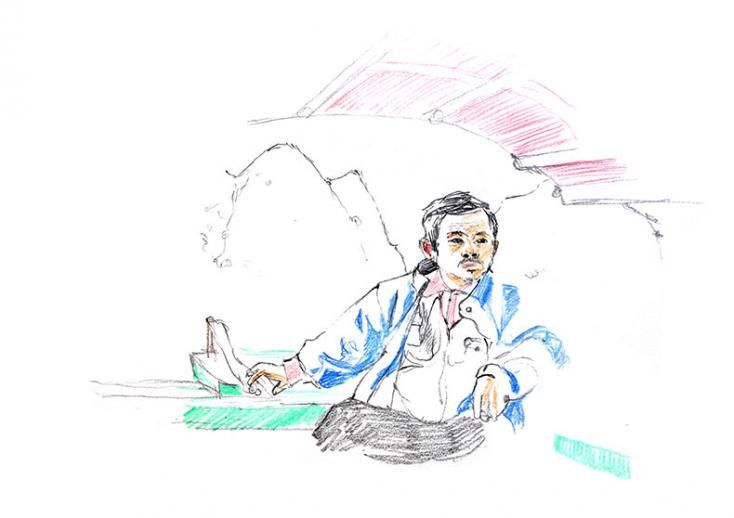 Le pêcheur qui nous accompagne adore voir le dessin se former sur la page blanche. A chaque fois, il s'installe à côté de moi et observe, du début à la fin. Je lui offre un portrait quand on se sépare. J'ai oublié de lui demander son nom.